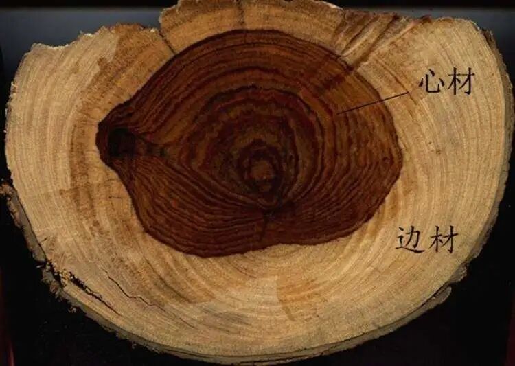 白皮:称“边材”。红木心材部分颜色深,而边材部分颜色明显变浅,心材与边材区分相当明显,而且心材更加坚固。为防止开裂、变形、剥落,红木家具承重部位和家具表面不能用边材。
